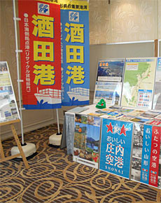 セミナーでは、県内へ立地している花王株式会社 森村元博常務取締役とスパイバー株式会社 関山和秀取締役兼代表執行役の特別講演などがあり、セミナー後のレセプションでは、酒田港PRブースを設置し、酒田港の港湾機能や国際定期コンテナ航路などについて参加者の皆さまへPRしました。 |